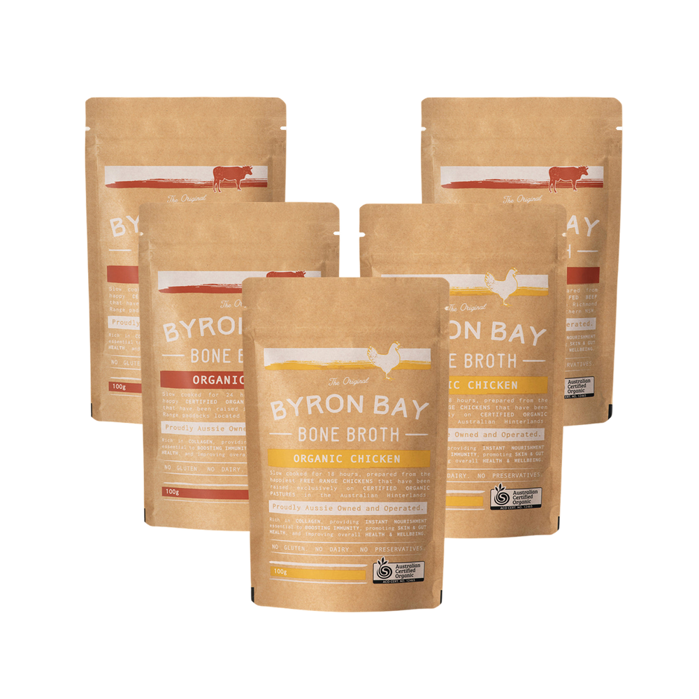Bundle Contents: 5 x Bone Broth Powders, mix and match chicken or beef