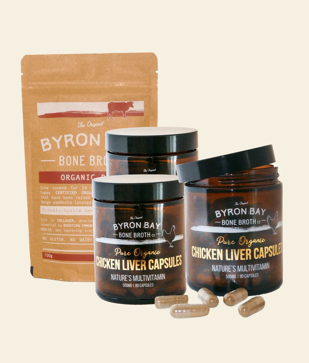 Made from organic pasture-raised chicken livers used in BBBB's regenerative bone broth process